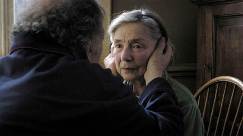 There's not even a single cause given to explain the decline of Riva's Anne. One day, she sits with her affectionate husband ("Did I mention you looked pretty tonight?" he asks her early on), Georges (Jean-Louis Trintignant) and zones out. It takes her a disconcerting amount of time to snap out of it. This is the moment that their shared life has led up to, the tragedy that every day brought closer. There's one waiting for all of us. And then more.