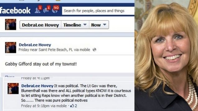 "Gabby Gifford (sic) stay out of my towns!!" DebraLee Hovey wrote in a now-deleted Facebook post, which she filed while on vacation in St. Pete Beach.