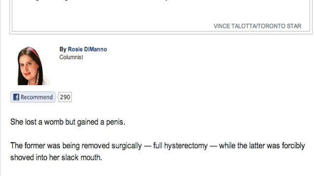 Congratulations, Toronto Star columnist Rosie DiManno – not only have you written a horrifying story about a horrible incident, but you have also written what's probably the worst lede of all time. That lede is:
