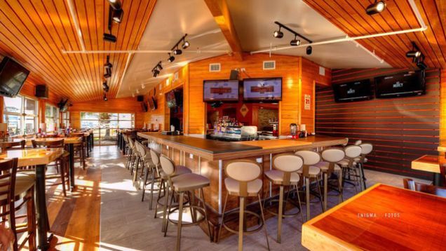 The new look features a lot of wood (ha!) and a little t-shirt shop in the store. A press release states that restaurant-goers will "experience a variety of design elements that will surely keep them comfortably seated for hours" which will make it very convenient for middle-aged men to ogle twenty-something women's breasts.