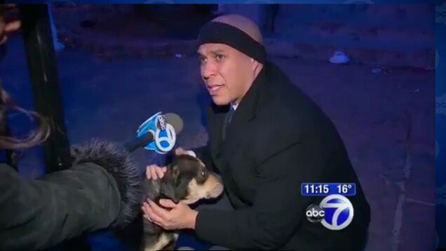 After being alerted by a reporter for WABC's Eyewitness News to the peril of a shivering pooch that had apparently been stranded outside by its owner on a bitterly cold night in Newark, Mayor Cory Booker responded by heading out into the cold to personally rescue the chilly dog from certain doom.