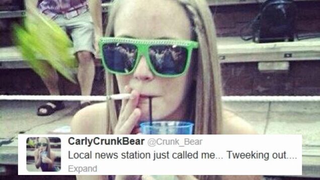 McKinney was busted by a viewer tip to local NBC affiliate 9News, and subsequently deleted her account, CarlyCrunkBear.