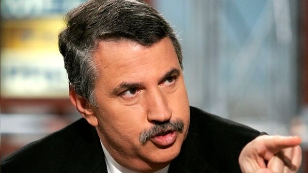 What is Thomas Friedmanbot saying in his widely read and closely studied newspaper column today?
