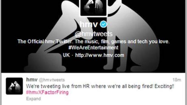 A group of rogue Human Resources employees have apparently hijacked HMV's Twitter account to blast the company for its "mass execution of loyal employees who love the brand."