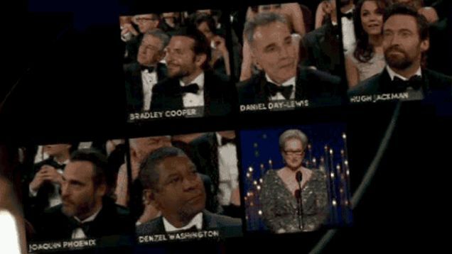 Oscars host Seth MacFarlane closed out the show alongside proud pipsqueak Kristin Chenoweth with an original musical number dedicated to the night's losers. Since it was dreadful (and murmured as if MacFarlane and Chenoweth knew to be embarrassed), we can do better. Here's a proper ode to the losers: the exact moment that the nominees lost (and one won) looped for eternity. (This an update to this post of the losers throughout the years that I put together last year.) This is the reason that the animated gif was invented.