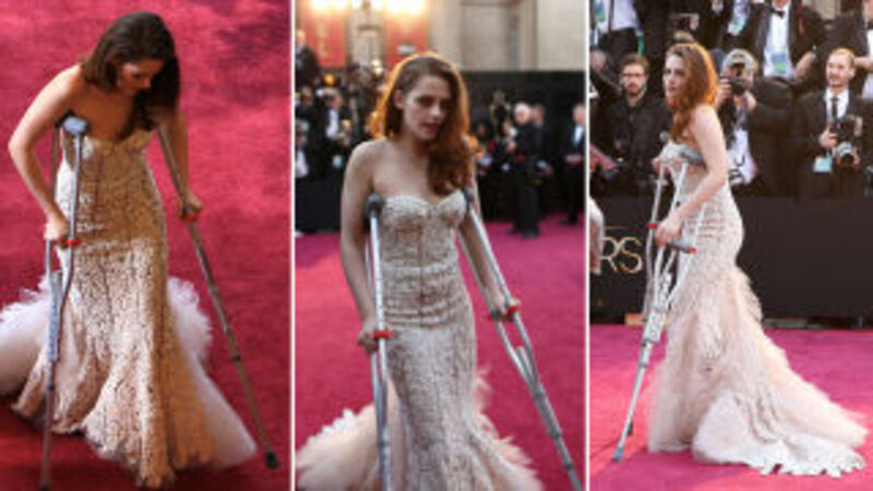 Was anyone even surprised when Kristen Stewart showed up to last night's Oscars ceremony hobbling on crutches, looking disheveled as all get out? Bedraggled disarray is just her natural state. Of course Charlize Theron wore Dior. Of course Kristen Stewart's arms were covered in mysterious bruises.