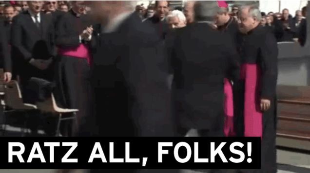 Some 50,000 people turned out at the Vatican today to watch Pope soon-to-be-Emeritus Benedict XVI give his farewell address at St. Peter's Square, cheering and waving flags as the 85-year-old Pontiff, born Joseph Ratzinger, summed up his papacy: "The Lord gave us days of sun and of light breeze, days in which the fishing was good. There were also moments when there were stormy waters and headwinds," when "it seemed like the Lord was sleeping." (Among the "headwinds": institutional corruption and the protection of predatory priests.) But don't sweat it: he's not "coming down from the Cross," he's just serving it in new ways, mostly involving prayer. Benedict's pontificate oficially ends Thursday at 8 p.m. Italian time, when the Swiss Guards outside Castel Gondolfo—the summer residence to which he'll be traveling tomorrow afternoon—march off; at the end of the week, the Cardinals (at least a dozen of whom are "tarnished with accusations that they had failed to remove priests accused of sexually abusing minors") will have begun the process to choose a new pope. His seal, and the ring of his office will be destroyed. [Sky | Reuters | NYT | HuffPo]