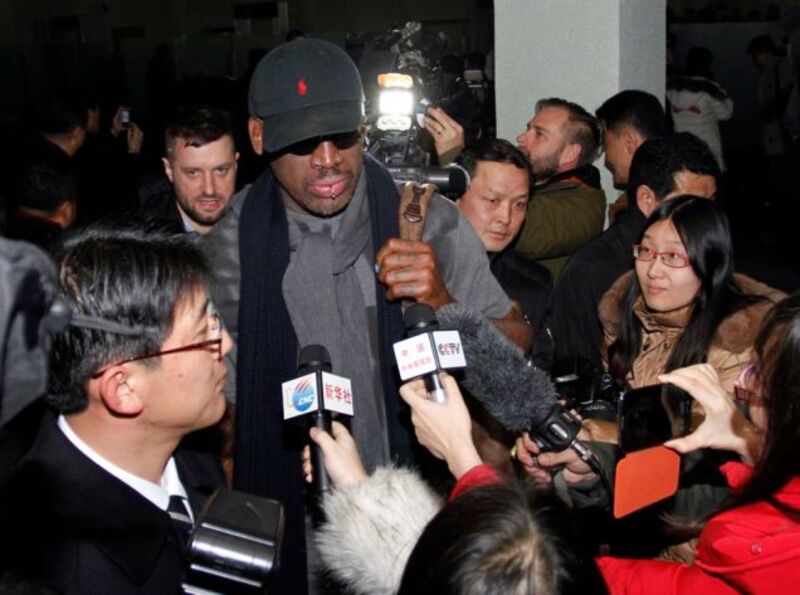 You may have heard by now that Dennis Rodman, professional basketball's version of a beleaguered shock jock, is on a diplomatic mission to nightmarish dictatorship North Korea, accompanied by a team from Vice and the Harlem Globetrotters. It's a motley crew to be sure, but based on the fact that Rodman and Vice are now calling themselves "friends" to the famine- and gulag-ridden Asian nation, things seem to be going quite well. One Vice staffer, Jason Mojica, even tweeted about being allowed into North Korean supreme leader King Jong-un's own home to be feted with food and booze: