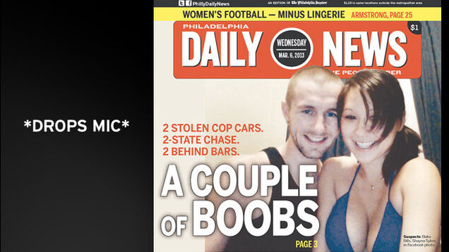 "It was an amazing story," said Philadelphia Daily News news editor Kevin Bevan over the phone this week. Bevan doesn't know exactly who found the Facebook photo of Blake Bills in a tank top and Shayna Sykes in what looks like a bikini top—whether it was Daily News graphics editor Jon Snyder, or reporter Stephanie Farr, or if it'd already been floating around online. But once that image had been identified as Wednesday's possible cover, there it was, tabloid destiny, bright as two beach balls: