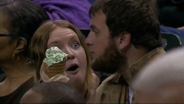Most likely, as pointed out by Isaiah Thomas and Chris Webber in the post-game play-by-play (see below), the SO had turned down an earlier opportunity to enjoy her very own ice cream cone, and the boyfriend was merely making a very necessary point.