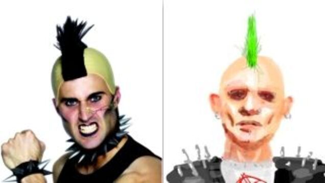 Most of all, Joe Sly is so punk that his online avatar is a green-mohawk leather-studded illustration (above, right) of a "punk" nicked from the first page of Google Image results for the word "punk rocker." How very punk.