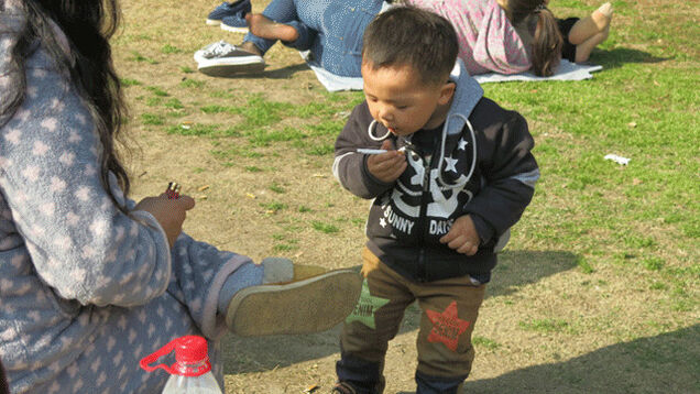 Today is April Fool's Day, so when it comes to pictures of toddlers crushing cigarrettes, we tread carefully. Still, here are several pictures of a chill ass toddler smoking a cigarette lit for him by his mom in Shanghai's Fuxing park on Easter Sunday.