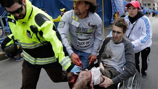 Two explosions rocked the finish line of the Boston Marathon today. Here are some of the latest photos from the scene. Warning: Some of these images, particularly the one at the bottom of this post, are graphic. [all photos via AP and Getty.]