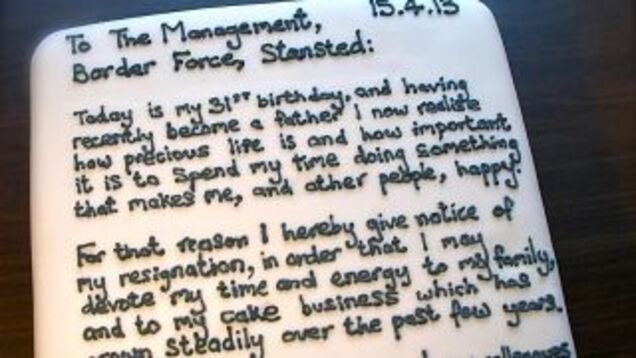 But one aspiring chef from Cambridgeshire, England, turned the tradition on its head by using a Passion cake to tender his resignation.