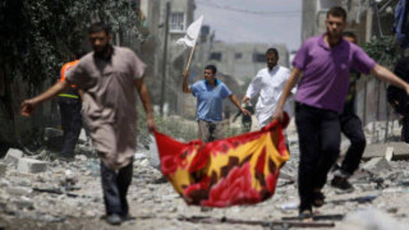 The New York Times reports that most Palestinians were killed Sunday in the eastern neighborhood of Gaza City called Shejaiy. According to their report, 417 people have been killed in Gaza since Israel began airstrikes on July 9 in response to the 1,800 rockets fired from Gaza City into Israel. More than 3,000 Palestinians have been injured.