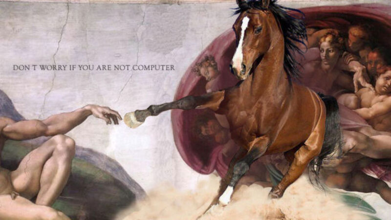 "Don't worry if you are not computer," Horse_ebooks said in another memorable tweet that was shared 3,154 times. Here we see the positive side of reading what you want into a sacred text. Some found it funny, but many saw it as profound. We live in a time of immense social disruption, as humans are rapidly replaced by computers and robots. If nearly everything we do for "work" can be done by a machine, what are we here for? "Don't worry," Horse_ebooks says. Whatever our purpose, it won't serve this mission to feel anguish over something we're not.