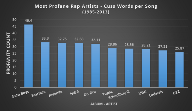 -The Geto Boys have the highest cuss words per song average of any group in the survey.