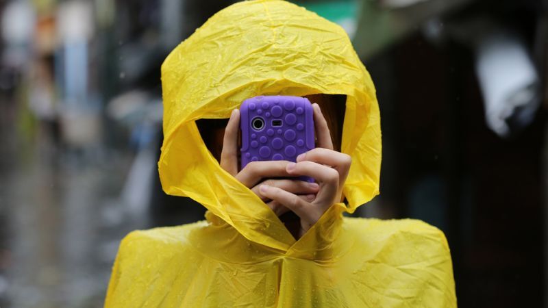 A woman takes a photo on the flooded streets of Quezon City in the Philippines, Wednesday. Typhoon Rammasun struck the country late Tuesday, leaving at least five dead. Photo by Aaron Favila via AP.
