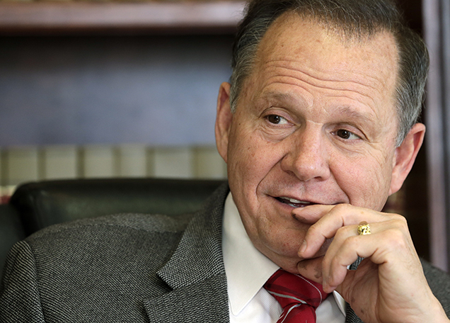 Moore, then in the same position, is the judge who famously defied a federal order to remove a Ten Commandments statue from a Montgomery building before being removed from the post; he was re-elected as chief justice in 2012.