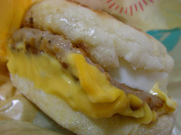 McDonald's: Eggs and meat and cheese on a biscuit or English muffin.