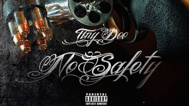If you'd like to hear Tiny Doo's mixtape No Safety, you can do so here. But be aware that by listening to it, you may somehow be implicated in nine California shootings for which 14 men are about to stand trial. Tiny Doo himself is one of those men, and even prosecutors admit that the only crime he committed is releasing his music.