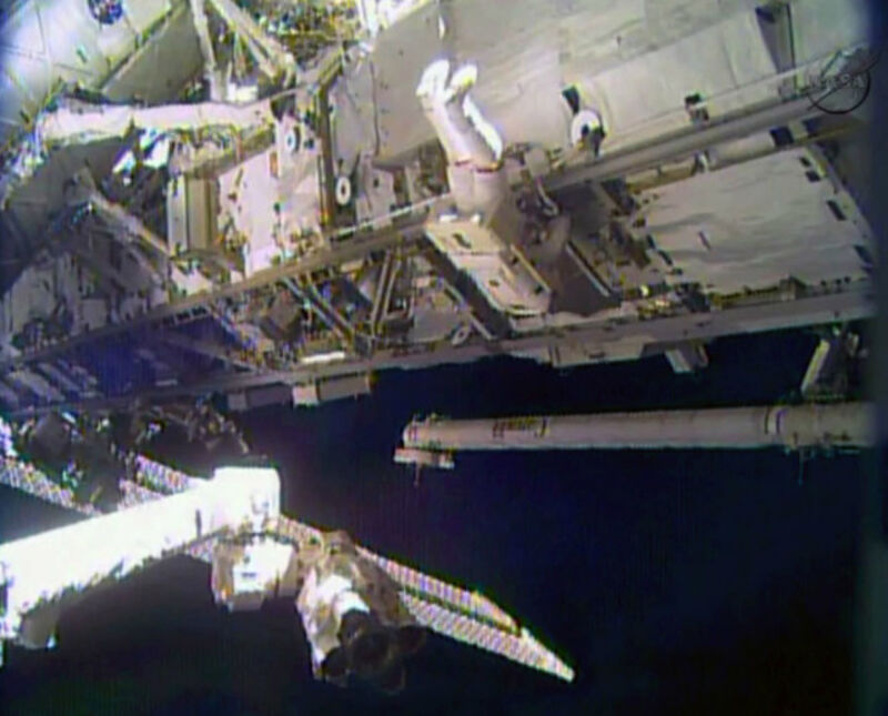 American astronauts Michael S. Hopkins and Richard A. Mastracchio are being assisted by Japanese astronaut Koichi Wakata, who is using a robotic arm from inside the space station to help the astronauts during repairs. The space suits on the International Space Station, and specifically the one being worn by Mastracchio, have come under scrutiny after a near-fatal accident in July where an Italian astronaut almost drowned during a spacewalk. Officials have attributed the problem to the suit's cooling system, where they found that a filter had become clogged. The astronaut hurried back inside the space station, but not before water had blocked his nostrils.