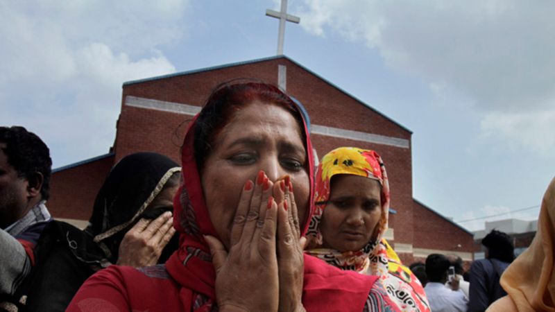 In the aftermath of the blasts, police say mobs of angry Christians gathered to lynch two suspected Taliban informers, burning one of them to death.