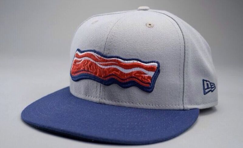 Philadelphia-area minor league baseball team the Lehigh Valley IronPigs (one word, for some reason) unveiled their new gear for the spring season and its emblazoned with a food that Americans cannot stop inhaling into our mouth-holes. Oh yeah, it's your friend, your good friend, bacon.