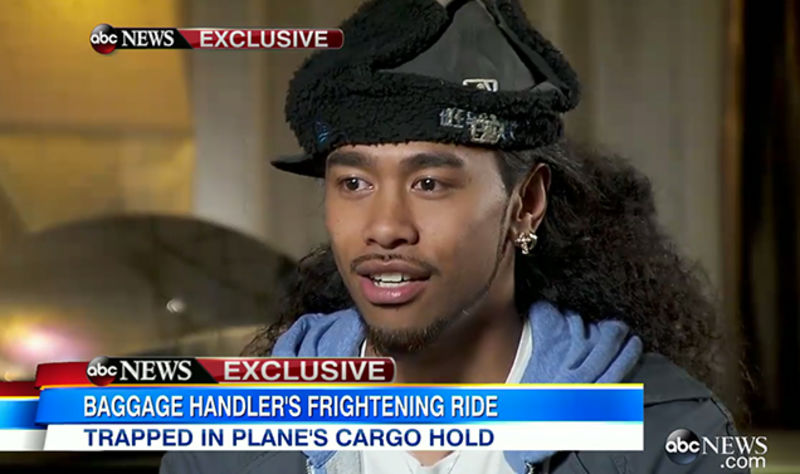 At some point in the process of loading baggage on a Los Angeles-bound Alaska Airlines flight out of Seattle, Junior fell asleep. “In the cargo...I was exhausted...so I dozed off...” Junior explained to the news network. Shortly after takeoff, he was awoken by a suitcase falling on his head.