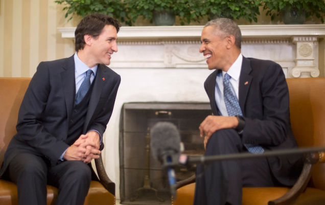 “Where else could a boy born in Calgary grow up to run for president of the United States?” Obama jokingly commends Canada for having rejected a wall along the Southern border.