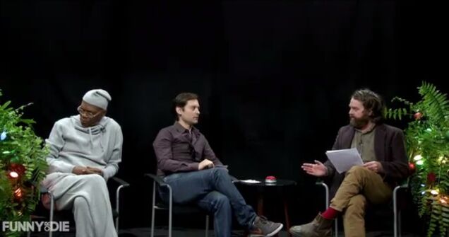 Samuel L. Jackson in sweats, "Toby" Maguire being told to keep his fucking mouth shut, Arcade Fire performing "Little Drummer Boy" like a whole bunch of weirdoes, terrible gifts, and a seemingly unending barrage of awkwardly inappropriate questions — what more could possibly ask for in a Christmas special?