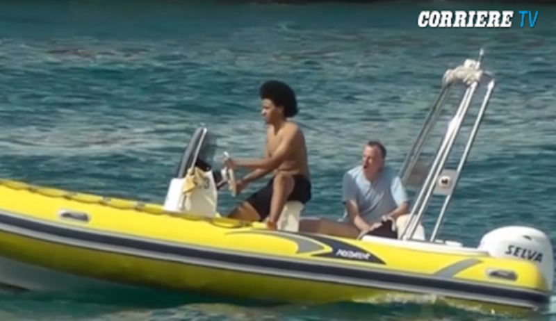 Bill de Blasio yawns as his son, Dante, drives a boat near the coast of Naples, Italy on Tuesday. [Image via Wall Street Journal]