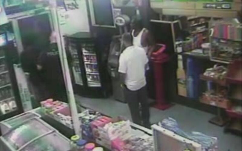 In the video below, Earl Sampson is arrested for "trespassing" after taking out the store's trash and going back inside: