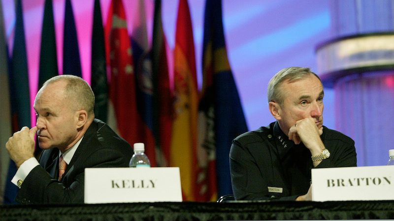 Before stats came to the fore of their feud, Kelly and Bratton most often traded criticism about stop-and-frisk, and their approaches to that tactic mark the most obvious difference in their respective policing styles. During Kelly’s second term, the department began stopping New Yorkers with unprecedented frequency, and the ensuing backlash greatly influenced the election of Mayor Bill de Blasio, who appointed Bratton. The latter commissioner all but ended the NYPD’s use of stop-and-frisk upon assuming the office, instead focusing on so-called “broken windows” policing, a theory which holds that aggressively arresting people for minor crimes will lead to a decline in major crimes.