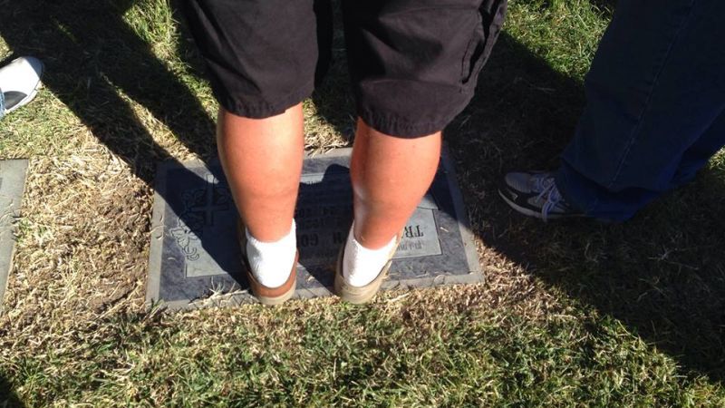 New Mexico's KRQE spoke with Montano, who was also upset because the fake funeral service brought spectators who traipsed all over real graves. Like this jerk, who stood obliviously on the marker of a child who never saw his third birthday: