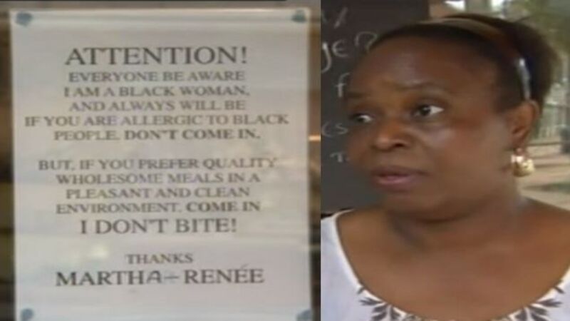 A black mother-of-three who owns a cafe in a heavily white town is taking a stand against the racism she says she's had to endure for the past two years by posting a sign on the door informing potential customers of her race in advance.