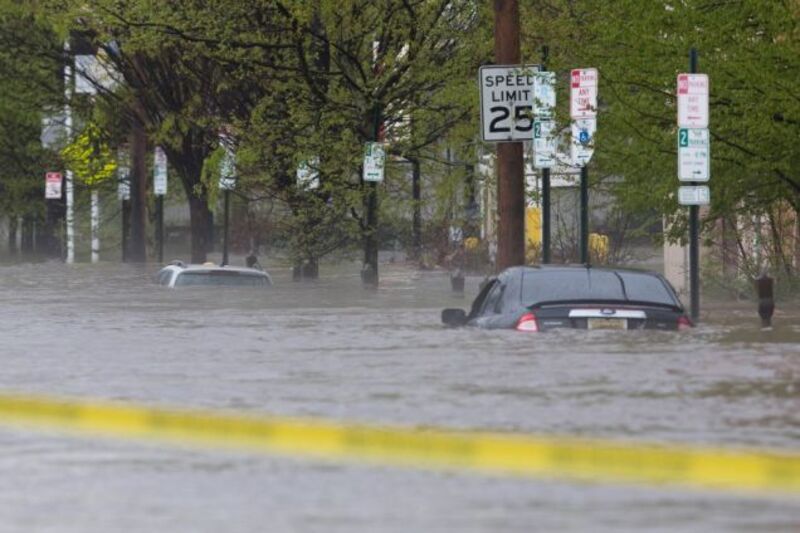Cars are submerged in the Schuylkill River's flood waters along Main St. on Thursday in Philadelphia. During a nine-hour period that ended early Thursday, Chester County got 6.6 inches of rain, Delaware and Montgomery counties got 5.5 inches or more and Philadelphia almost 5 inches. Image via Matt Rourke)/AP.