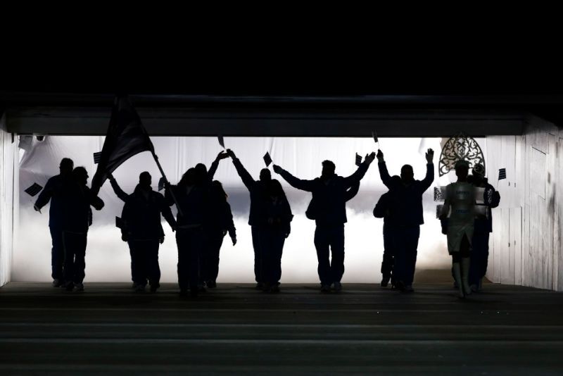 [Members of the Italian team cheer as they enter the stadium during the Opening Ceremony. Image via Patrick Semansky/AP.]