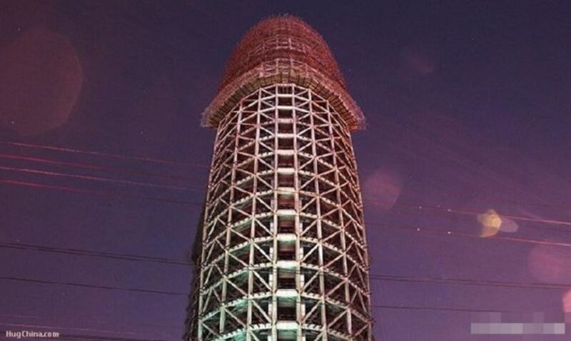 But not before a few dirty-eyed Weibos noticed that the People's Daily's Leaning Tower of Penis fit ever-so-snugly into the opening of state-run TV broadcaster CCTV's headquarters, known locally as the "Big Underpants" building.