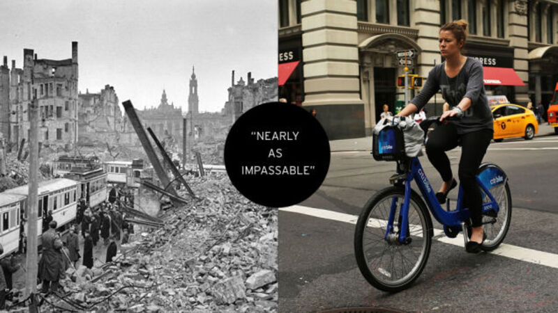 Decades after the U.S. and British Air Forces firebombed the German city of Dresden to the ground, its citizens have finally taken their revenge by filling New York with so-called "modern firebombs": bicycles.