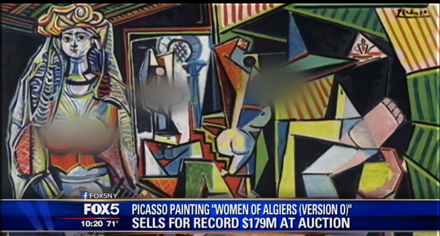 Remember that painting we talked about yesterday? The ugly Picasso that sold at Christie’s for a price so exorbitant that it’s painful to mention again ($179 million dollars)? Well, according to Fox5 in NY, it wasn’t only crazy expensive, it was pornographic.
