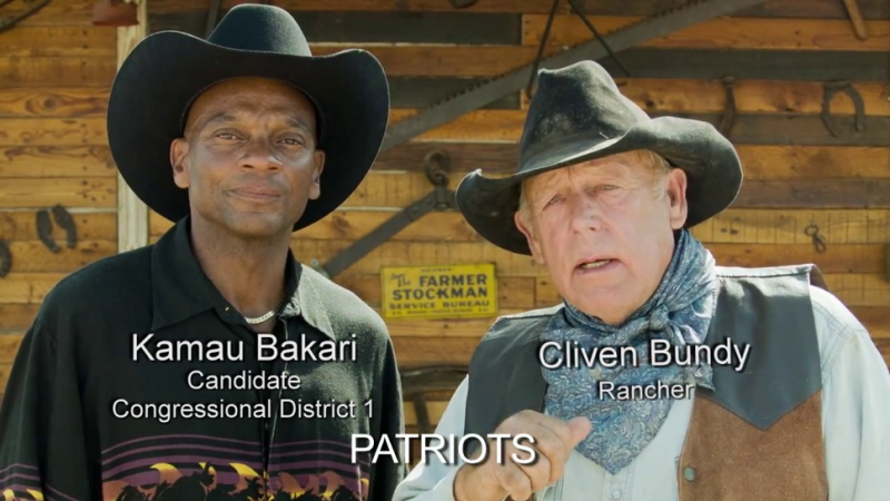 “I know that black folks have had a hard time with, uuhhh . . . slavery. And, you know, the government was in on it,” Bundy tells Nevada candidate Kamau Bakari. “And the government’s in on it again,” he says, this time referring to the absurd state of political correctness in America.