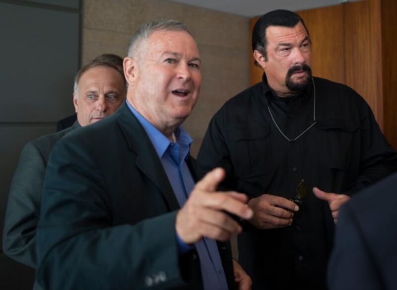 "We were having a little bit too much to drink, I guess. But anyways, we started arguing about who won the Cold War, etc. And so we decided to settle it like men do when they’ve had too much to drink in the pub. And so we got down to these arm wrestling matches. And I ended up being paired up with Putin. And he’s a little guy, but boy I tell you, he put me down in a millisecond. He is tough. … His muscles are just unbelievable."