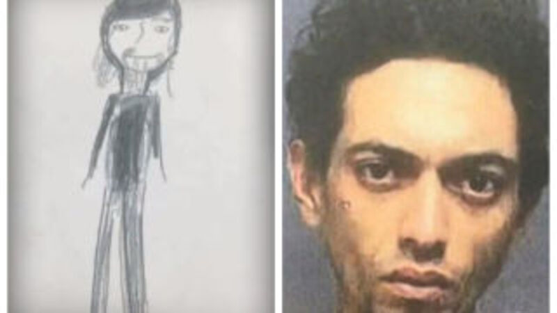 The drawing helped law enforcement apprehend their suspect, a man who appears to have single rake tines for hands and an appetite for buhsketti sauce and/or snakes.