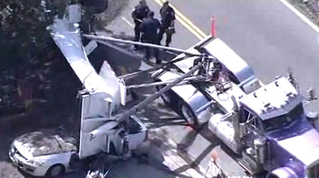 Combs' neighbor, Travis Hegarthy, heard the trailer crash, telling the San Jose Mercury News, "It sounded like two cars going 80 mph going head on into each other. I didn't expect to see a dump truck on top of a car":