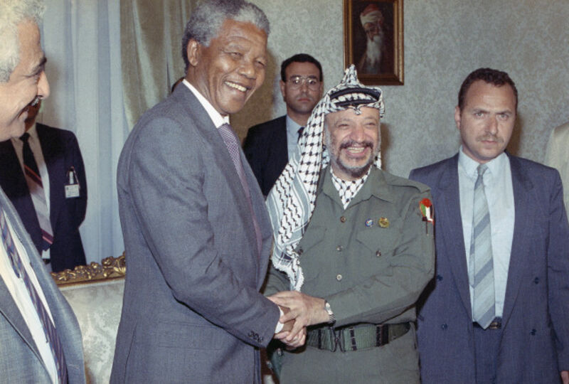 If authenticated, the letter's substance could complicate Mandela's legacy, however. As a revolutionary and a politician, he courted many leaders and movements—such as the Palestinian Liberation Organization and groups it had trained—whose aims were opposed to Israel's. Pictures of Mandela with PLO head Yassir Arafat, like the one above, are ubiquitious.