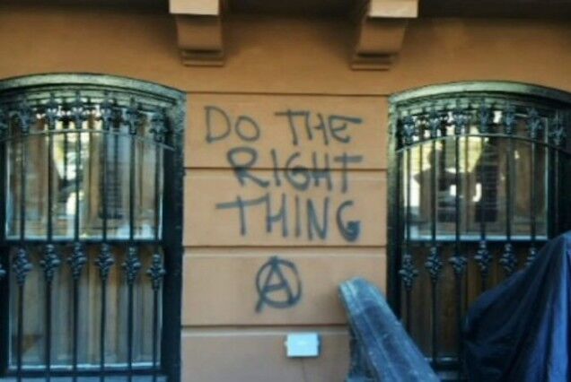 Two days after Spike Lee's anti-gentrification rant, someone spray-painted "Do the Right Thing" several times on a house next door to Lee's old home in Ft. Greene, Brooklyn.