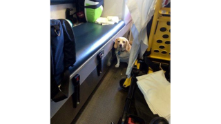 Tanner Brown, an emergency medical technician, told the paper it was "a crazy ordeal," after a driver had to flag down the ambulance to alert them to their extra little passenger. Buddy, a a 35-pound Beagle mix, had been perched on the ambulance's small side step for the twenty-mile trip.