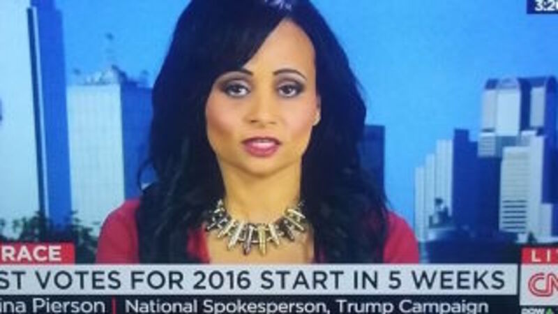 Katrina Pierson, a person Donald Trumps chooses to represent him on television, wore a necklace made out of ammunition last night on CNN. When someone on Twitter pointed this out, she countered with an insane remark about abortion.