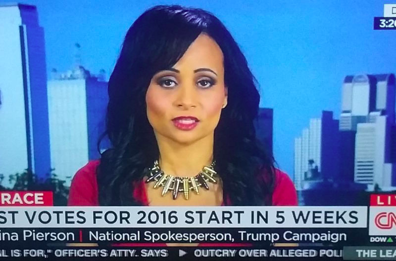 Katrina Pierson is an impressive figure, if only for her ability to out-batshit her employer, Donald Trump. She serves as a campaign spokesperson and talking head, frequently appearing on cable news to offer summaries of Trump’s, discriminatory policy proposals and his general hardline xenophobia and bigotry—which makes it, perhaps, a little funny that once she sued her boss for racial discrimination.